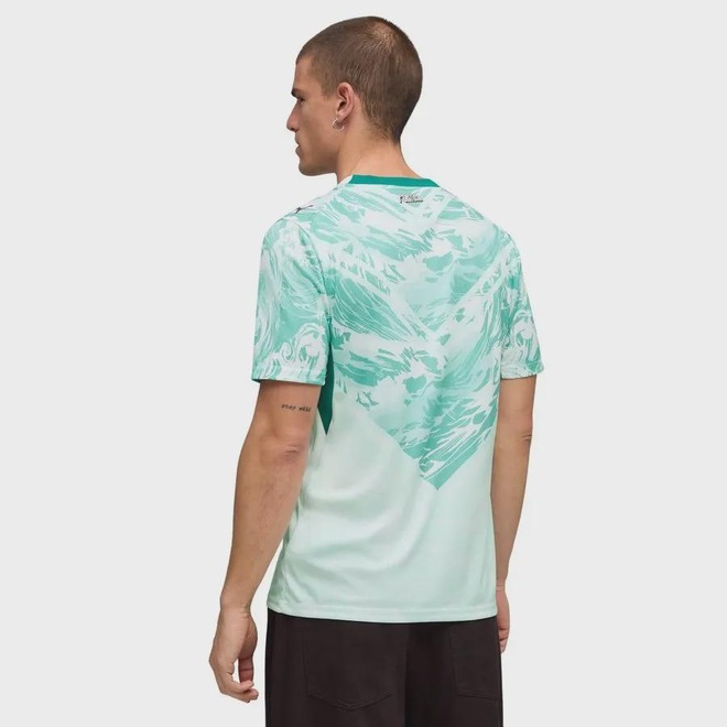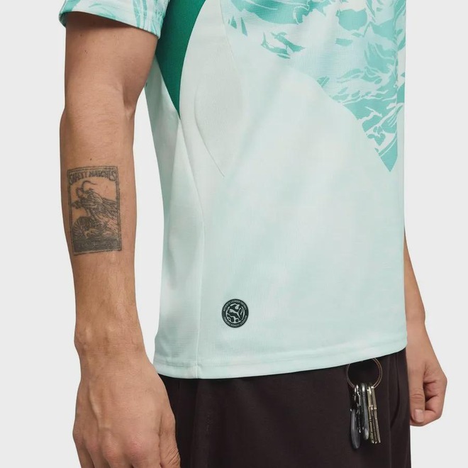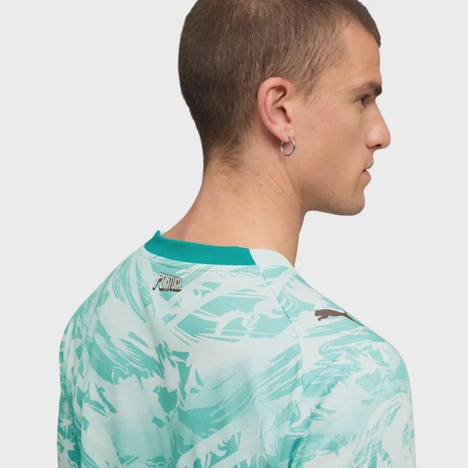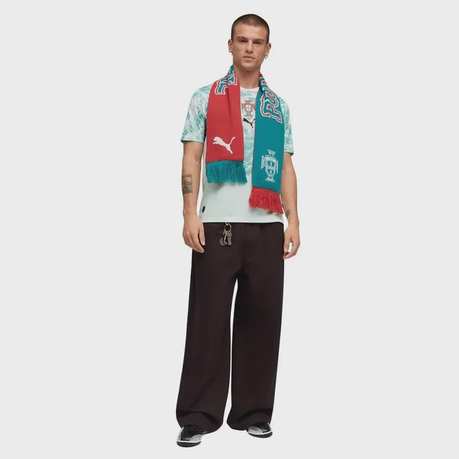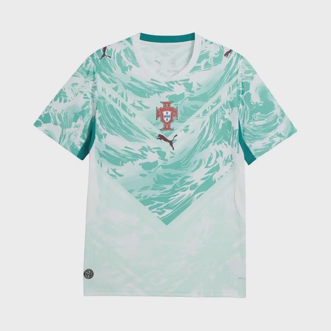 A camisa Portugal II 2026 Puma torcedor masculina traz um visual moderno inspirado no oceano, combinando as cores branco e verde-água em um design que conecta tradição e renovação. Desenvolvida para representar a seleção em grandes competições, a peça une estética esportiva e versatilidade para uso dentro e fora dos estádios. Confeccionada em tecido jacquard dupla face 100% poliéster reciclado, oferece leveza, conforto e durabilidade, enquanto a tecnologia dryCELL atua na absorção do suor, mantendo o corpo seco e confortável ao longo do dia. A modelagem regular proporciona caimento equilibrado, com liberdade de movimento, e os painéis em malha favorecem a ventilação em áreas estratégicas. A gola redonda e os detalhes oficiais da equipe e da PUMA completam o visual com autenticidade, tornando a camisa uma escolha ideal para torcedores que valorizam desempenho, conforto e identidade esportiva.