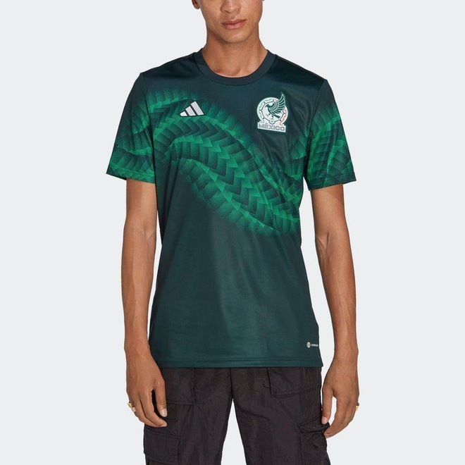Sendo o mesmo modelo antitranspirante que os jogadores do México vestem nos aquecimentos pré-jogo, esta camisa adidas busca inspiração divina para garantir o sucesso da seleção mexicana.