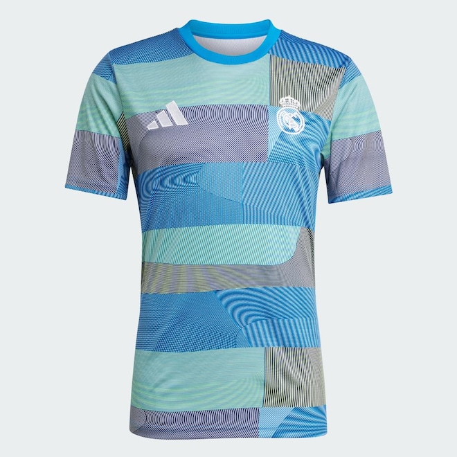 Os jogadores e torcedores do Real Madrid certamente se sentirão em casa com esta camisa de futebol da adidas. Com um design dinâmico inspirado no novo estádio do clube, o Bernabéu, ela fará com que você se destaque, seja aprimorando suas habilidades ou torcendo pelos seus heróis. O AEROREADY, que controla a umidade, mantém você seco durante toda a ação, e o emblema do clube bordado dá o acabamento perfeito.