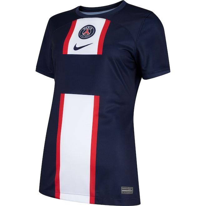 A camisa Torcedor feminina tem mangas curtas, logo da marca bordado e sua gola é careca, canelada e tem tira interna que protege do atrito junto à pele. Compre já sua camisa PSG!