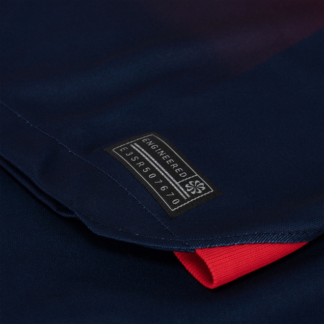 Oferece um caimento que não limita os movimentos e um design incrível nas cores do clube com o predomínio do azul escuro aliado às listras em um leve degradê vermelho e branco.