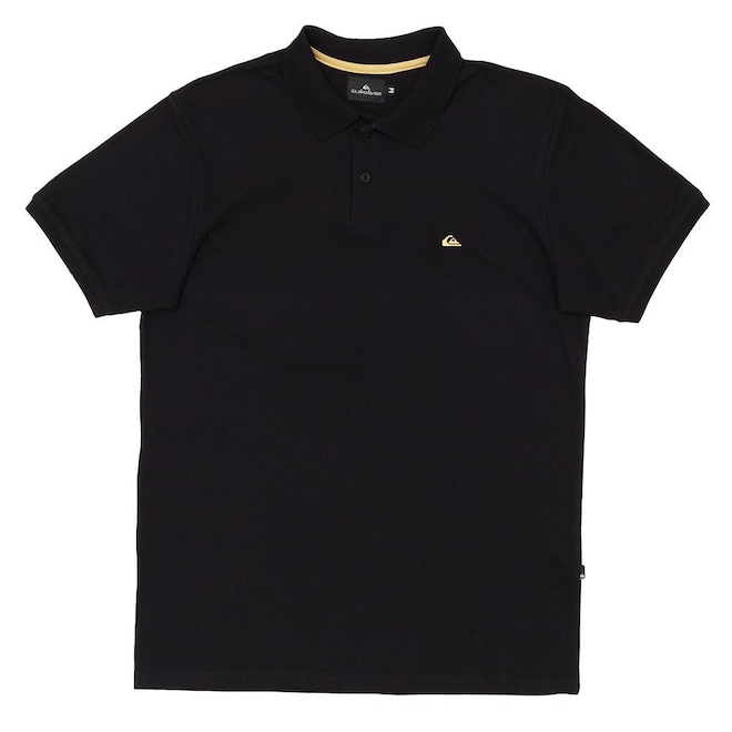 Camisa QuikSilver Polo feita em modelagem regular fit, bordado no peito com 1 cor, tape contrastante, combinando com o bordado, vista 2 botões pretos e etiqueta aplicada na lateral esquerda de quem veste.