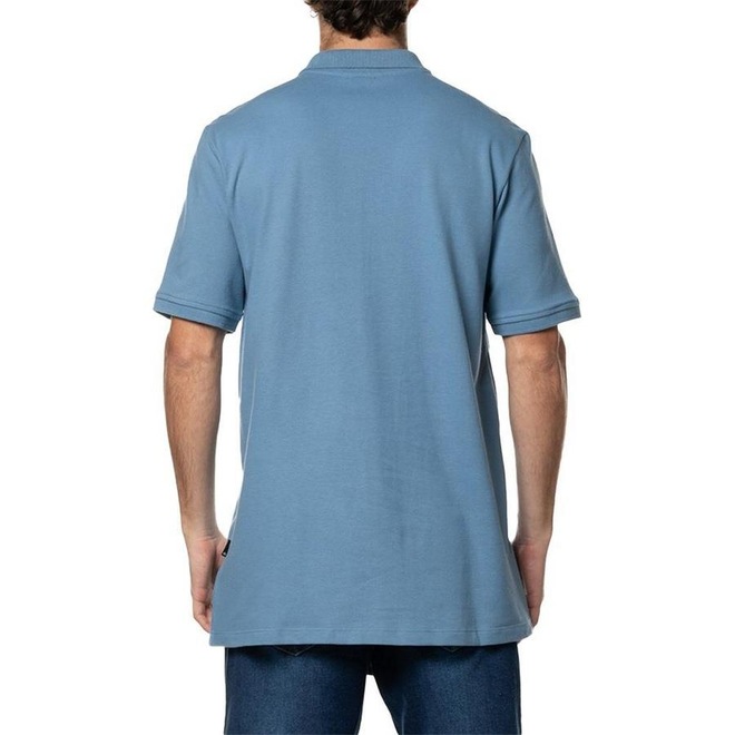 Camisa QuikSilver Polo feito em modelagem regular, tape contrastante, combinando com o bordado, vista 2 botões pretos e etiqueta aplicada na lateral esquerda de quem veste.