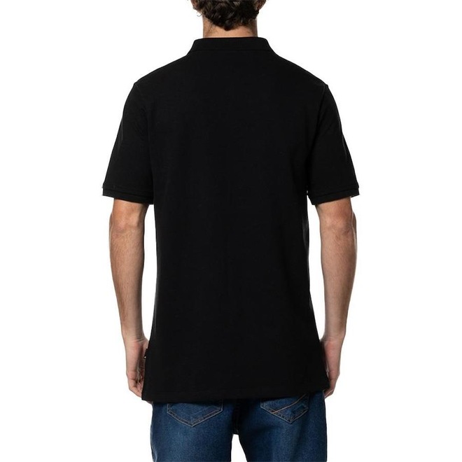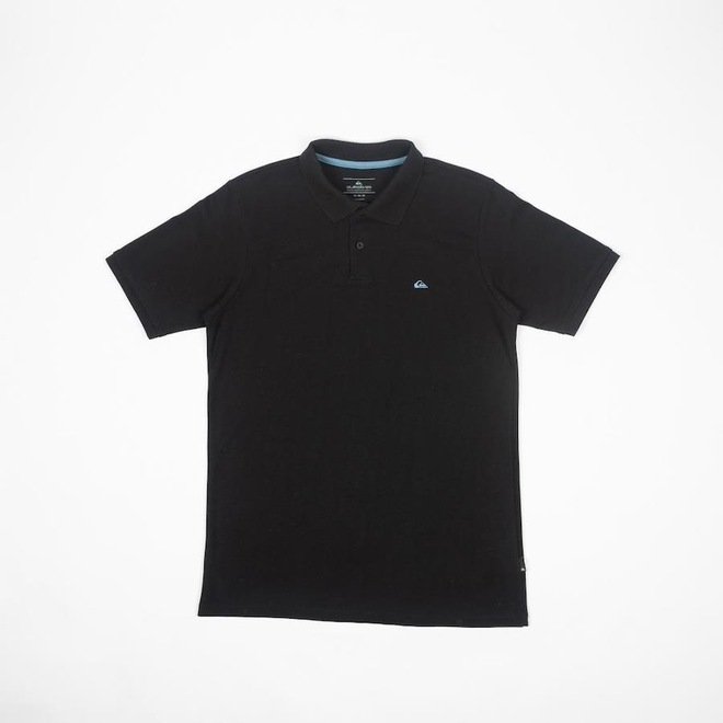 Camisa QuikSilver Polo feito em modelagem regular, tape contrastante, combinando com o bordado, vista 2 botões pretos e etiqueta aplicada na lateral esquerda de quem veste.