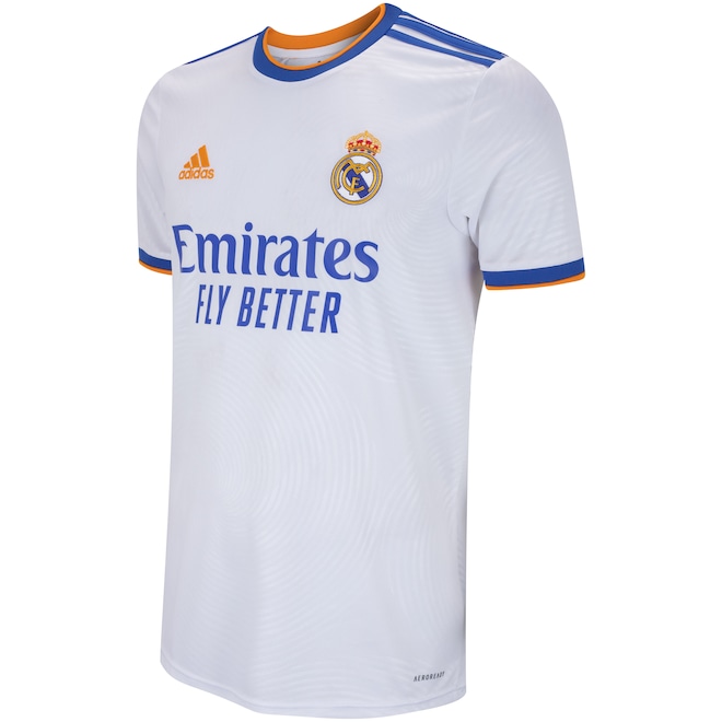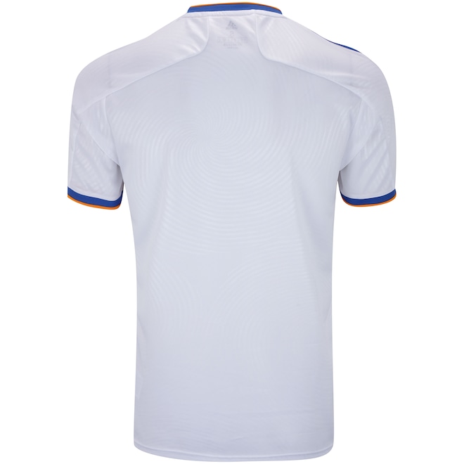 O manto titular da temporada 21/22 chega com um tecido em poliéster na cor branca com detalhes em azul e laranja. Seu diferencial é a tecnologia Aeroready desenvolvida para proporcionar respirabilidade e absorção do suor para comodidade duradoura. A gola da camisa masculina é careca com tira interna em tecido que ajuda a diminuir o atrito de contato com a costura. A camisa conta com Primegrieen que é combinação de materiais recicláveis de alto desempenho. Não perca a chance e adquira a Camisa Real Madrid, arrase por onde for!ref: 964493