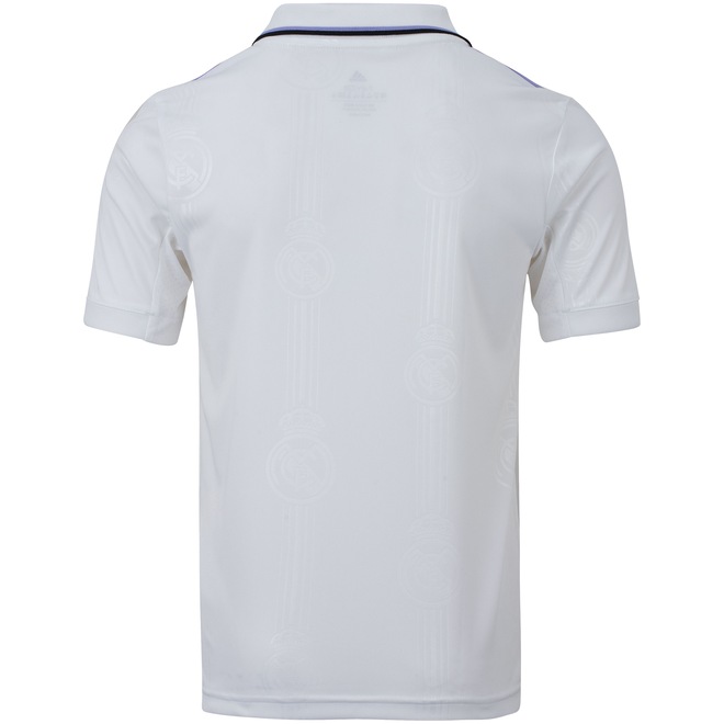 A camisa Real Madrid é de mangas curtas, com gola polo e tira interna em tecido que ajuda a diminuir o atrito de contato com a costura.