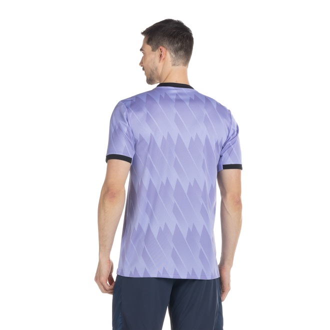 A camisa Real Madrid masculina é de mangas curtas, com gola careca e tira interna em tecido que ajuda a diminuir o atrito de contato com a costura.