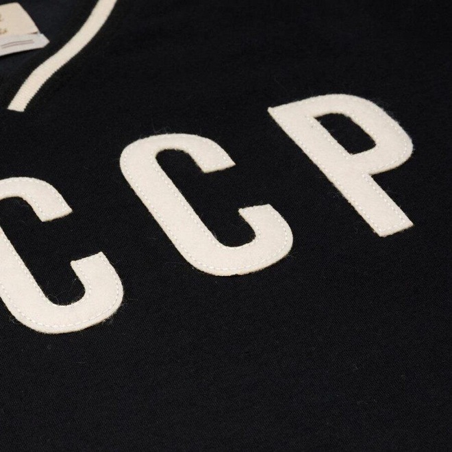 O modelo ostenta o orgulho pela seleção CCCP.