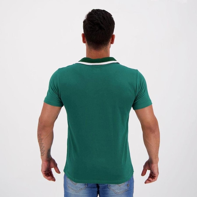 Já o seu design, é composto predominantemente pela cor e traz detalhes em , como pose der visto na gola, que por sua vez é polo com acabamento canelado e corte em V.