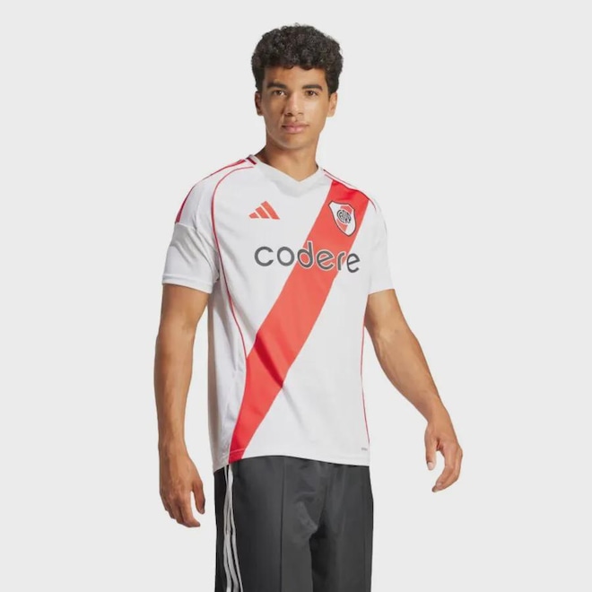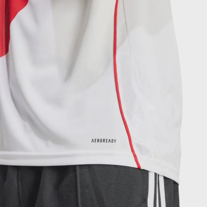 Em 1994, o River Plate ficou invicto para garantir uma vitória memorável no título. Para marcar o aniversário de 30 anos dessa conquista, esta camisa de futebol da adidas usa a camisa titular vencedora do campeonato como inspiração. As 3 listras vermelhas, os detalhes de debrum e gola remetem àquela era inesquecível. O AEROREADY que gerencia a umidade e o doubleknit macio acrescentam um pouco de conforto moderno. Detalhes: Ajuste fino. Decote em V. Escudo tecido do River Plate. "Grandeza" abaixo da gola traseira.