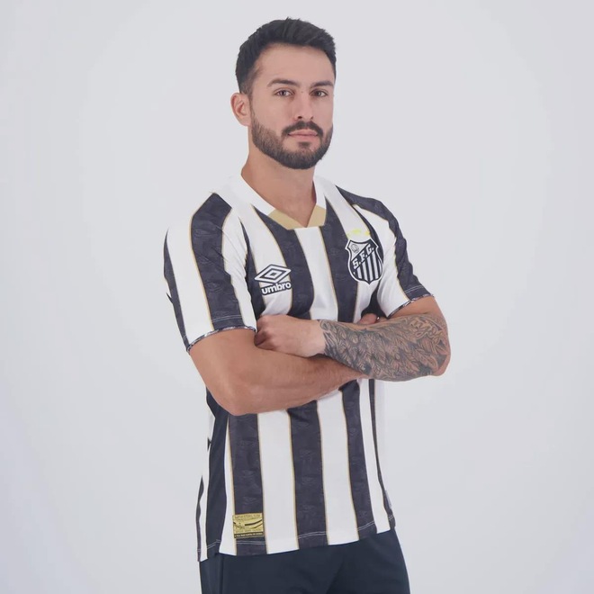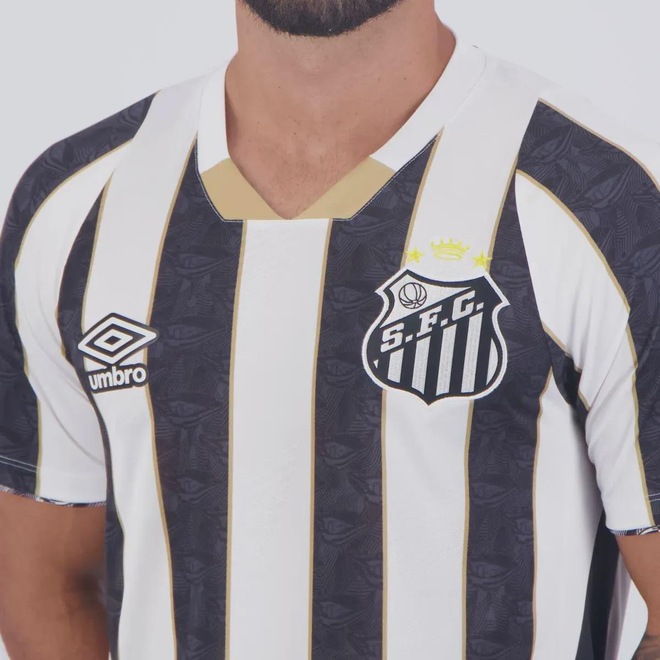 NEYMAR JRNeymar Jr. é um gênio do futebol moderno. Com dribles inebriantes, criatividade sem limites e uma visão de jogo privilegiada, ele transforma o campo em palco. Sua habilidade em desequilibrar adversários e marcar gols decisivos faz dele um dos maiores talentos da geração!Celebrando a casa da realeza da bola, a Umbro apresenta o novo manto titular do Peixe para a temporada 2024. A camisa traz como destaque a imagem da casa santista aplicada, em embossing, na parte frontal do uniforme, além de contar com detalhes listrados na cor preta, nos punhos e laterais da peça, representando o Estádio Urbano Caldeira. Já na barra inferior direita e nuca, selos especiais destacam o palco de craques do futebol que desfilaram toda a sua majestade, como o eterno Rei Pelé.Composição: Poliéster e ElastanoCor predominante: PretaIndicada para: JogoGênero: MasculinoOrigem: NacionalEscudo: BordadoClube: SantosManga: CurtaGola: VDimensões aproximadas (A x L):P: 63 x 42 cmM: 74 x 52 cmG: 75 x 55 cmGG (2G): 76 x 58 cmEG (3G/2GG): 80 x 65 cmEEG (4G/3GG): 79 x 67 cmEEEG (5G/4GG): 81 x 72 cm