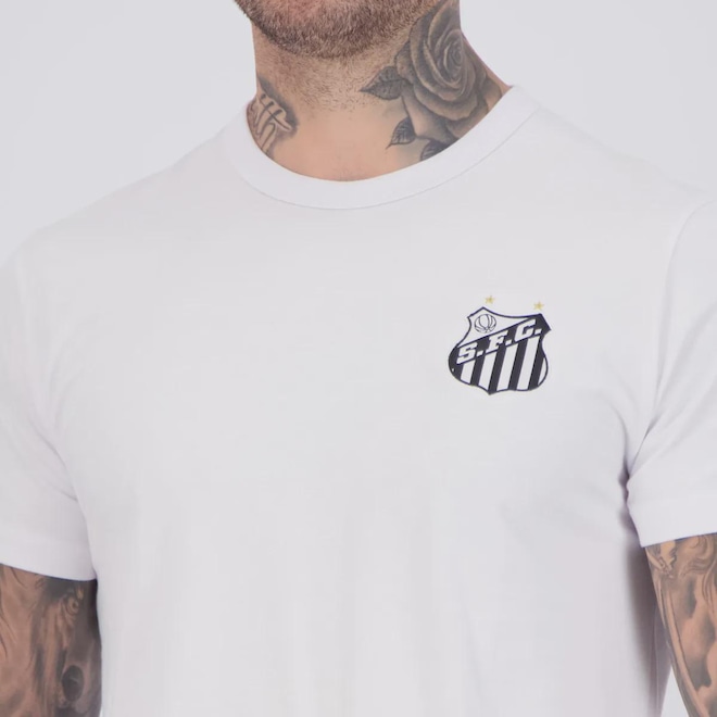 Composição: 100% AlgodãoCor predominante: BrancaIndicada para: CasualGênero: MasculinoOrigem: NacionalClube: SantosEscudo: BordadoManga: CurtaGola: Careca Dimensões aproximadas (A x L):P: 72 x 51 cmM: 74 x 53 cmG: 76 x 55 cmGG: 78 x 57 cmEG: 80 x 59 cm