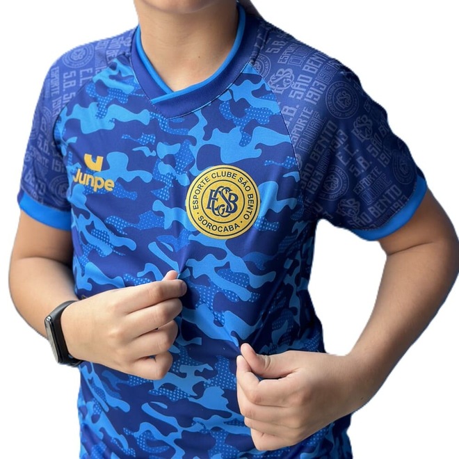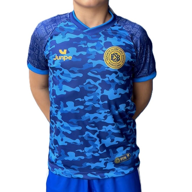 O Esporte Clube São Bento apresentou o novo material esportivo para 2025, o modelo apresentado trata-se da camisa de aquecimento infantil para o pequeno torcedor beneditino na temporada. Em tom de azul royal, a camisa apresenta detalhes em marca d’agua com o logo retrô do clube e o ano de fundação nos ombos. No lado esquerdo do peito o logo do clube é aplicado em dourado.