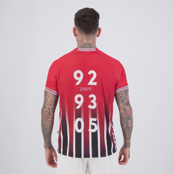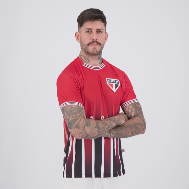 Composição: 100% Poliéster Cor predominante: Vermelha Indicado para: CasualOrigem: ImportadaEscudo: EstampadoClube: São PauloManga: CurtaGola: CarecaDimensões aproximadas (A x L):P: 76 x 53 cmM: 74 x 55 cmG: 76 x 57 cmGG: 78 x 59 cm