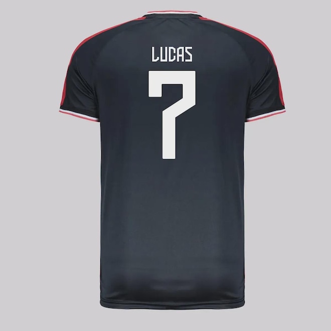 LUCASLucas é pura explosão e habilidade. Com arrancadas velozes, dribles desconcertantes e faro de gol, desequilibra defesas como poucos. Sua versatilidade permite brilhar tanto criando jogadas quanto finalizando. Um jogador elétrico que transforma energia em magia!Composição: 100% PoliésterCor Predominante: PretoEscudo: EstampadoGênero: MasculinoClube: São PauloOrigem: NacionalManga: CurtaGola: CarecaDimensões aproximadas (A x L):P: 71 x 49 cmM: 73 x 51 cmG: 75 x 53 cmGG: 77 x 55 cmEG: 79 x 57 cm