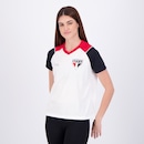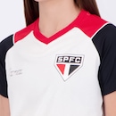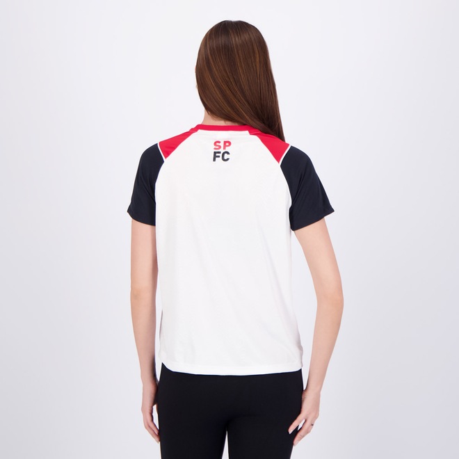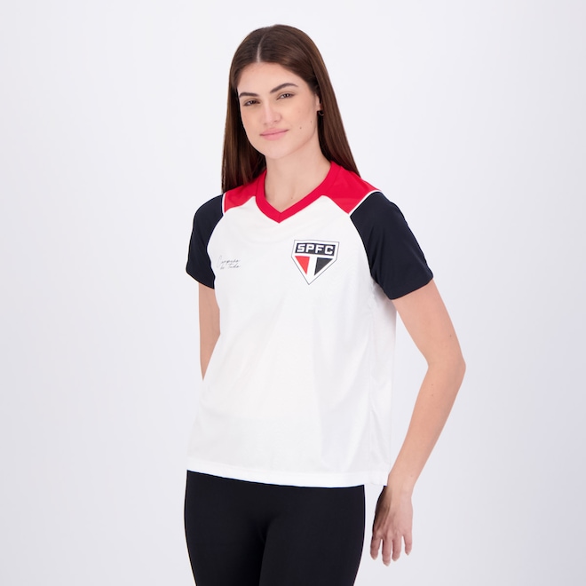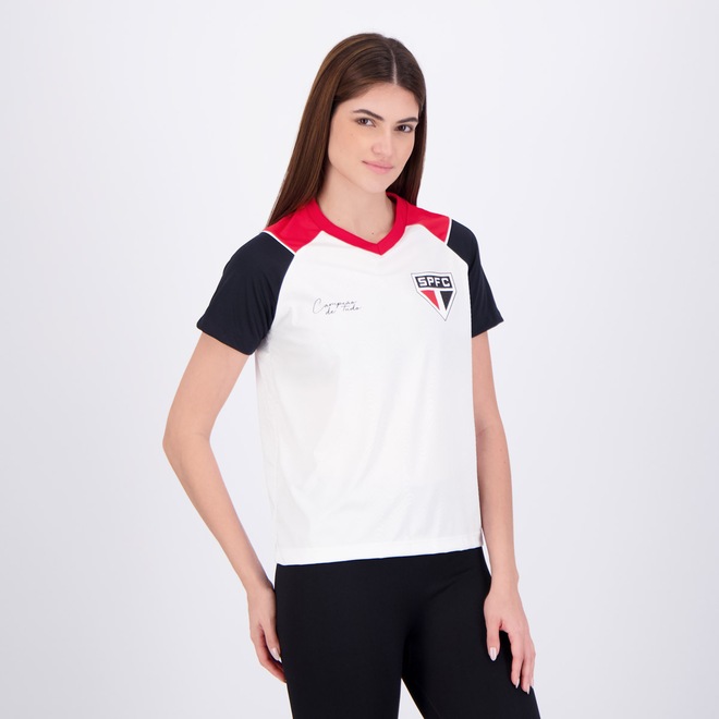Composição: 100% Poliéster Cor predominante: Branca Indicado para: Casual Escudo clube: Estampado Gênero: Feminino Layout: Camisa com padrão de listras onduladas em relevo, gola V vermelha e detalhe escrito em preto na parte frontal. Origem: Nacional Clube: São Paulo Manga: Curta Gola: V Modelagem: Regular Dimensões aproximadas (A x L): P: 58 x 46 cm M: 65 x 52 cm G: 68 x 53 cm GG: 71 x 58 cm