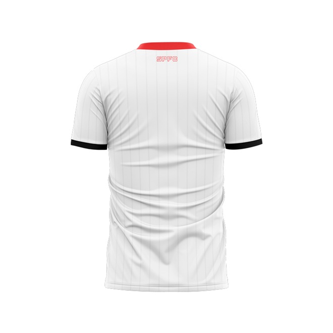 Produzida em 100% poliéster leve e respirável, a peça conta com um design ousado e moderno, na cor branca, com as tradicionais faixas do Tricolor na parte frontal, além do escudo do Tricolor do lado esquerdo do peito.