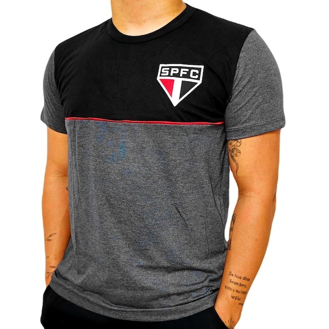 Produzida em 50% poliéster e 50% algodão, a peça conta com um design ousado e moderno, na cor , com as tradicionais faixas do Tricolor na parte frontal, além do escudo do Tricolor do lado esquerdo do peito.