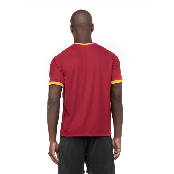 A camisa Seleção da Espanha masculina é de mangas curtas, com gola em “v” e tira interna em tecido que ajuda a diminuir o atrito de contato com a costura.
