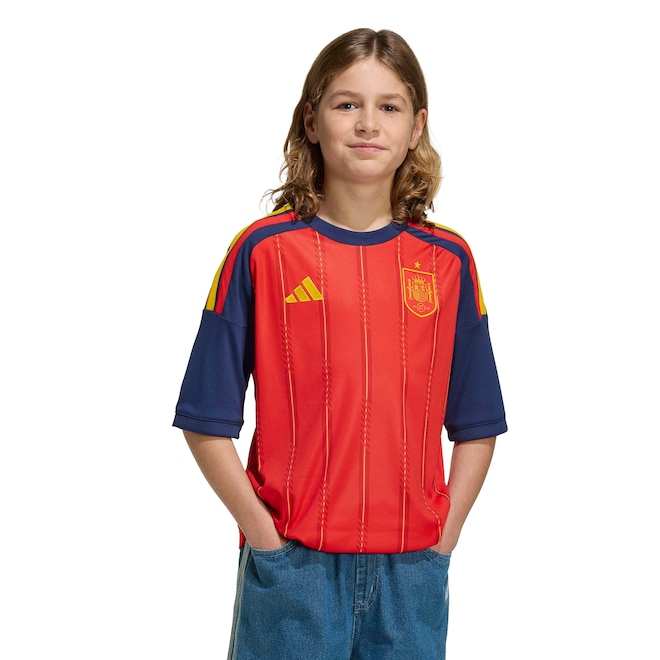 Vista seu pequeno craque com a Camisa Oficial Espanha I 26/27 Torcedor adidas Infantil! Sinta a paixão de La Roja e da Fúria com esta peça exclusiva.