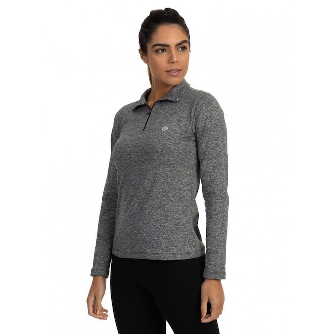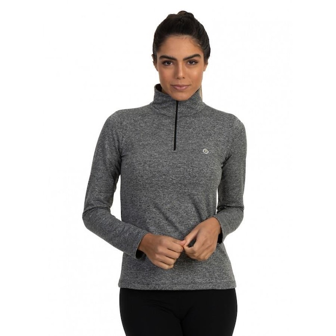 Camisa Térmica Feminina Mescla Gola Alta com Proteção Solar Extreme UV Mescla Cinza - G -