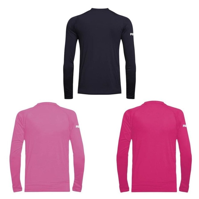 O Kit 3 Camisas Térmicas Puma Manga Longa UV50+ Infantil é perfeito para proteger as crianças dos raios solares durante dias na piscina ou praia. Feitas em tecido leve e confortável de poliamida e elastano, as camisas possuem proteção UV50+ e certificação OEKO-TEX, garantindo segurança proteção e conforto térmico.