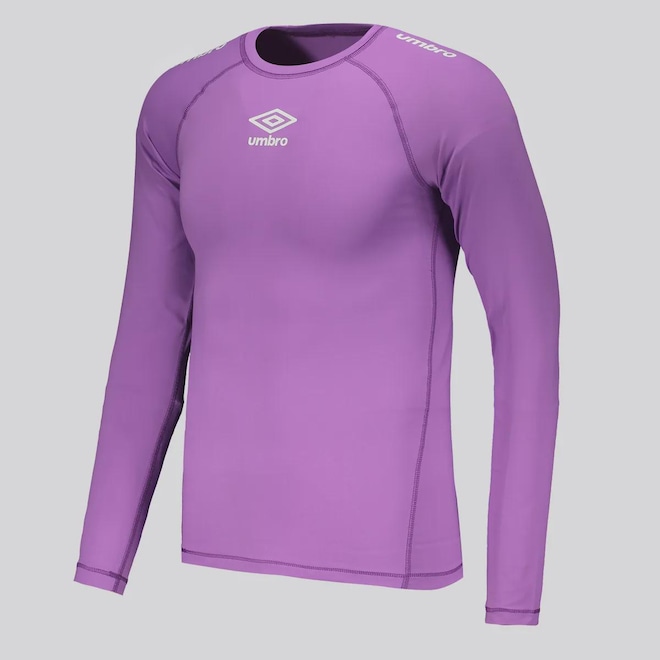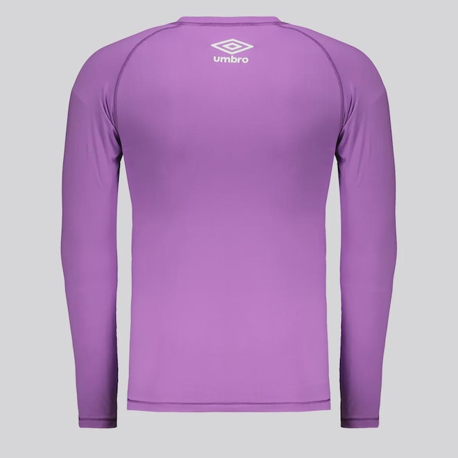 Composição: 90% Poliamida e 10% Elastano Cor predominante: Roxa Indicado para: Treino Gênero: Masculino Origem: Nacional Logo: Estampada Manga: Longa Gola: Careca Dimensões aproximadas (A x L): P: 63 x 38 cm M: 65 x 40 cm G: 67 x 42 cm GG: 69 x 44 cm