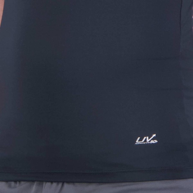 UV 50+ Permanente: Tecido aprimorado que protege a pele dos danos nocivos do sol, garantindo uma excelente performance nas práticas esportivas.Composição: 88% Poliéster e 12% Elastano