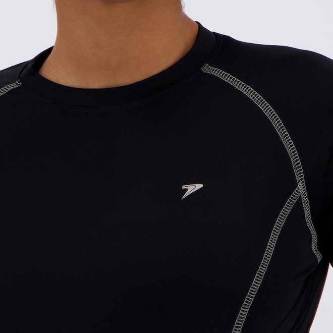 Construída com poliéster leve e flexível, a peça conta com o sistema Dry Active, que transfere o suor para a camada mais externa do tecido, mantendo o corpo seco e melhorando o desempenho do atleta, também diminui o crescimento de bactérias que causam odores no corpo.