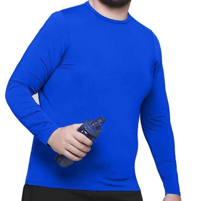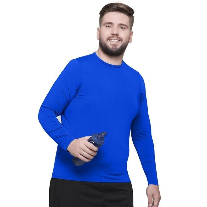 Mantenha-se protegido do sol, com a Camisa Térmica Selene Proteção UV Plus Size Masculina. Esta camisa foi desenvolvida com o conforto e a leveza da poliamida e a elasticidade do elastano. Além de ter a proteção térmica, ainda conta com o fator de proteção UV FPS 50+ que te protegem dos raios UV-A e UV-B. Possui gola careca e mangas longas. Seu design de cor única marinho deixa o visual esportivo mais estiloso. Medidas Aproximadas (cm): X1-54x67x58 / X2-56x69x60 / X3-58x71x62 (Largura x Comprimento x Manga).