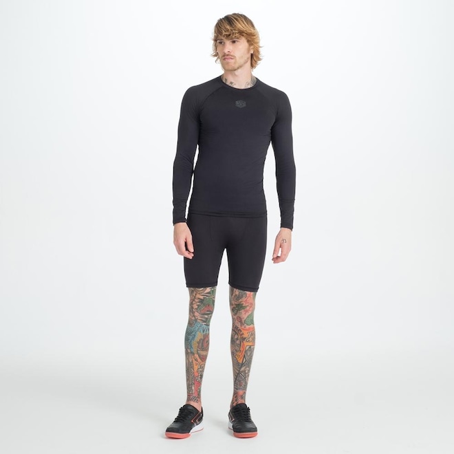 Esta camisa térmica é confeccionada em malha leve de poliamida e elastano, garantindo uma experiência de uso agradável e sem restrições. Seu fio tecnológico proporciona proteção solar com FPS 50+, bloqueando eficazmente os raios UVA e UVB. A modelagem slim fit ajusta-se perfeitamente ao corpo, oferecendo um visual estiloso e atlético.