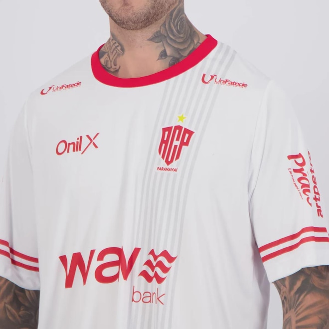 Composição: 100% Poliéster Cor predominante: Branco Clube: Paranavaí Indicada para: Torcedor Gênero: Masculina Origem: Nacional Escudo: Sublimado Manga: Curta Gola: Careca Dimensões aproximadas (A x L): P: 77 x 55 cm M: 79 x 57 cm G: 81 x 59 cm GG: 83 x 61 cm EG: 85 x 63 cm EEG: 87 x 65 cm 7G: 89 x 67 cm