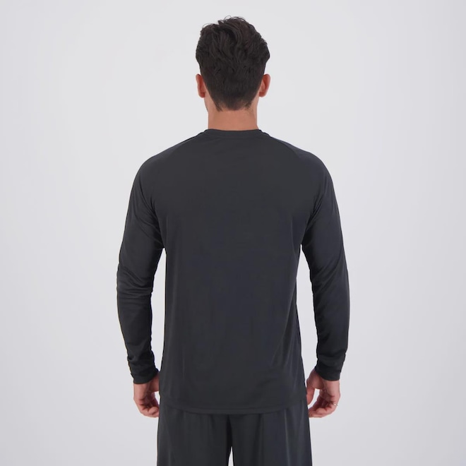 Composição: 100% Poliéster Cor predominante: Preta Indicado para: Goleiro Gênero: Masculino Origem: Nacional Logo: Estampada Manga: Longa Gola: Careca Dimensões aproximadas (A x L): P: 68 x 51 cm M: 72 x 53 cm G: 74 x 56 cm GG: 78 x 60 cm