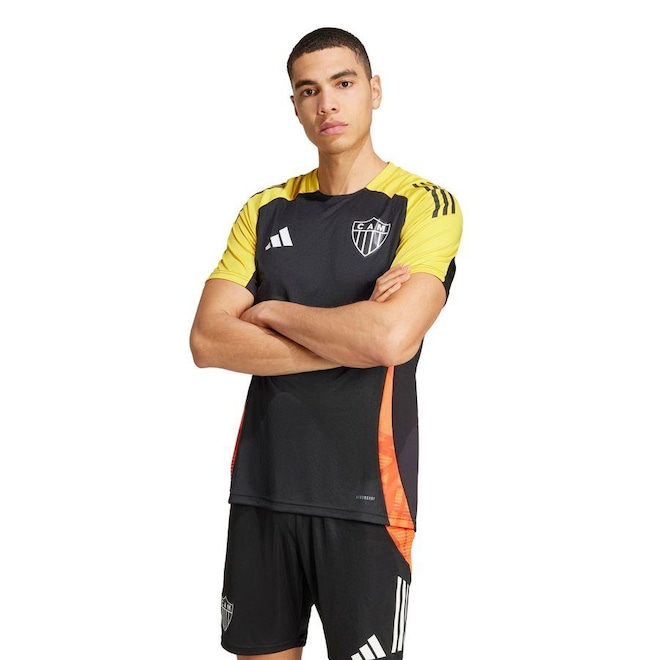 - Sobre o produto - Camisa do Atlético Mineiro adidas Tiro 24 Competition - Masculina- Prepare-se como os profissionais com esta camisa de treino adidas do Atlético Mineiro. Os painéis laterais em malha elástica e a tecnologia AEROREADY ajudam a manter seu corpo seco e refrescado durante treinos intensos, e a modelagem justa garante que nada diminua a sua velocidade máxima. No peito, o escudo leve estampado por calor compartilha sua inspiração no futebol. Este produto é 100% feito com materiais reciclados. Ao escolher o reciclado, podemos reutilizar materiais já criados, o que ajuda a reduzir o desperdício e a nossa dependência de recursos finitos, além de reduzir a pegada dos produtos que fabricamos. - ref: M16ARA