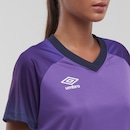 Camisa Feminina Umbro Baller confeccionada em malha 100% poliéster, indicada para a prática de exercícios. Camisa Feminina Umbro Baller Modelagem regular, levemente acinturada, com gola V transpassada mais aberta em ribana. Camisa Feminina Umbro Baller Possui manga curta raglan com degradê sublimado, cavas e gola pespontadas e logo Umbro em termo à base dágua aplicado na parte frontal direita superior.