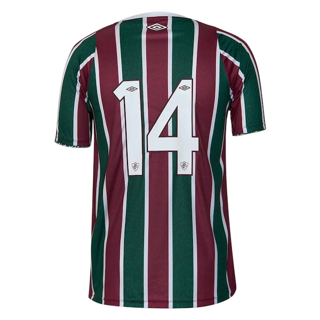 A Camisa Umbro Fluminense I 2024/25 Torcedor é a escolha ideal para os fãs do Tricolor das Laranjeiras. Produzida em poliéster de alta qualidade, oferece conforto e leveza para o dia a dia ou para torcer nos estádios. Sua gola em ribana proporciona um ajuste confortável, enquanto as mangas curtas com detalhes estampados nas pontas completam o visual elegante. Com as cores tradicionais do clube, o destaque do manto é o selo especial de Campeão Brasileiro de 1984, uma homenagem à história do Fluminense. O escudo bordado no peito e o número "14" estampado nas costas tornam essa camisa indispensável para os torcedores do Flu.
