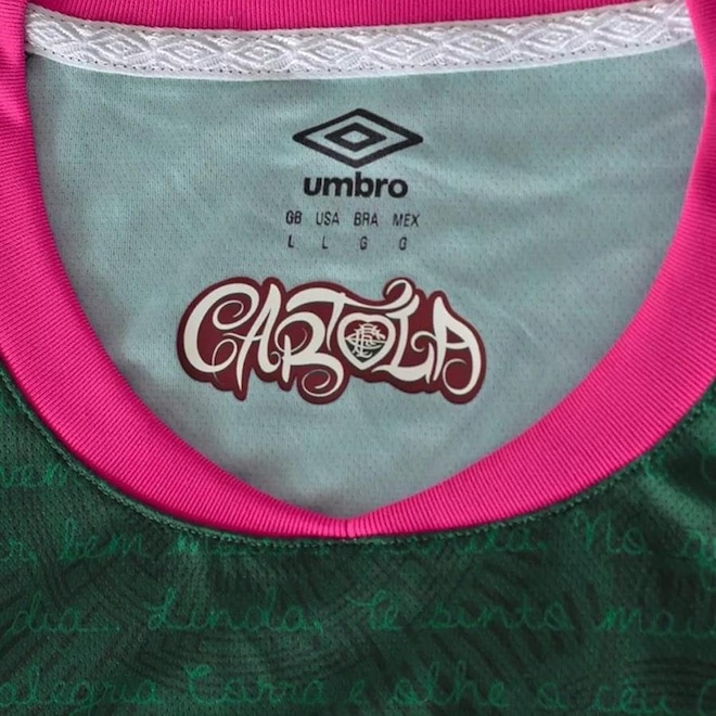 A Camisa Umbro Fluminense III 2023/24 é uma homenagem incrível ao famoso sambista Cartola, com uma edição especial super legal. Feita totalmente de poliéster com micro furos por toda parte, ela é bem confortável e deixa o corpo respirar. Seu design exclusivo captura a essência da música e da paixão pelo Fluminense, trazendo a letra famosa de "Corra e Olhe o Céu", uma canção imortalizada pelo torcedor fanático e rei do samba. A gola careca tem acabamento canelado e tira interna, proporcionando um ajuste confortável e seguro. As mangas curtas permitem que você se mova livremente para comemorar nos estádios. O escudo bordado do Fluminense e os detalhes especiais em homenagem a Cartola adornam a camisa, adicionando um toque de autenticidade e reverência à história do clube e do samba brasileiro. Esta camisa é mais do que um uniforme; é uma celebração da cultura, da música e do amor pelo futebol. Medidas aproximadas (cm): 8: 40x60 – 10: 42x62 – 12: 44x64 – 14: 46x66 (Largura X Comprimento).