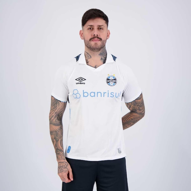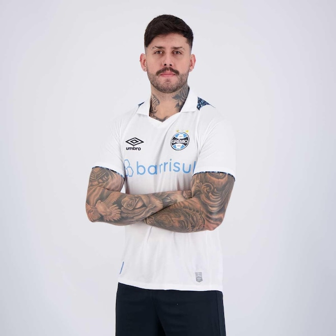 - Sobre o produto - Camisa do Grêmio Ii 2024 Umbro 7 Renato Gaúcho - Masculina- O mate é sagrado, o manto também! A Umbro apresenta o manto reserva do Grêmio para temporada de 2024 que homenageia um dos símbolos mais fortes da cultura e estilo de vida do povo gaúcho, o Chimarrão. O manto é feito em poliéster, exibe design na cor branca, traz grafismos na parte interna da nuca e dos punhos inspirados na erva-mate, além de dois selos, sendo um na barra com desenho do Campo, Mate e Sol, outro na nuca com o nome Imortal. - Renato Gaúcho