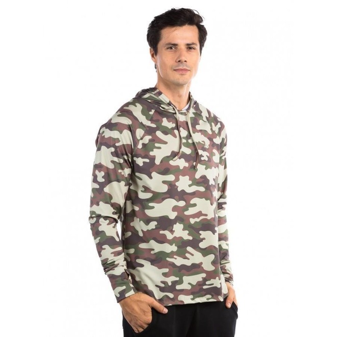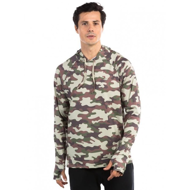 Camiseta Manga Longa UV com Capuz e Encaixe de Dedo Extreme UV Camuflada Militar - Masculina