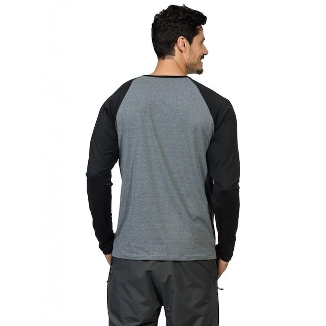 Camisa UV Masculina Mescla Ice Proteção Solar Manga Longa Raglan Mescla Cinza e Preto - GG -