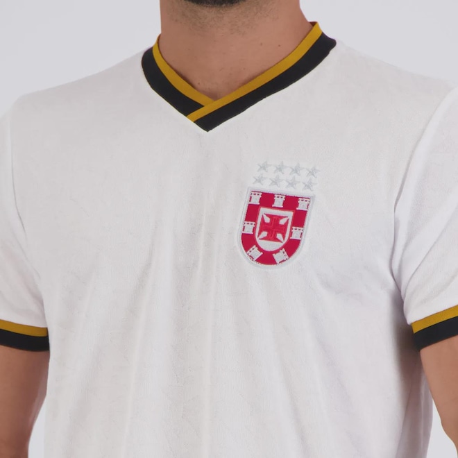 Composição: 100% PoliésterCor predominante: BrancaIndicada para: JogoGênero: Masculino Origem: NacionalEscudo: BordadoManga: CurtaClube: VascoGola: VDimensões Aproximadas (A x L):P: 68 x 51 cmM: 70 x 53 cmG: 72 x 55 cmGG: 74 x 57 cmEG: 76 x 59 cm
