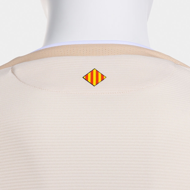 O escudo do Villarreal CF é aplicado em silicone na parte frontal, evitando atrito com a pele e garantindo leveza. A camisa também incorpora a tecnologia JOMA SPORTECH, originalmente usada em calçados, que aumenta a durabilidade da peça. Para completar, a parte superior das costas traz um detalhe especial: a bandeira da Comunidade Valenciana estampada.