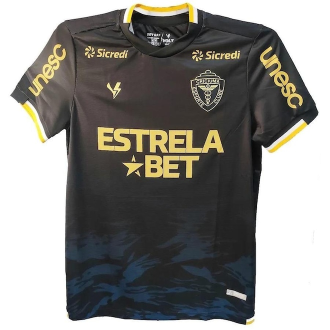 A nova camisa do Criciúma é preta, com detalhes em azul marinho para homenagear a história do clube. Além disso, conta com o primeiro escudo utilizado depois que a agremiação foi rebatizada, deixando de se chamar Comerciário e passando a levar o nome da cidade. Produzido em tecido Jacquard com tecnologia Dry Ray, que auxilia a prática esportiva, o lançamento ainda possui detalhes nas cores atuais do Tigre (amarelo, preto e branco) nas mangas, gola e laterais, além de um recorte duplo sublimado tricolor na região da nuca. O uniforme dos goleiros é na cor azul. A peça é assinada pela Volt Sport, fornecedora de material esportivo do clube catarinense desde a temporada passada.