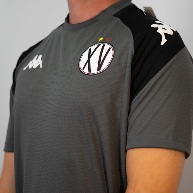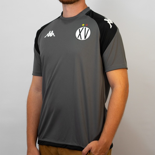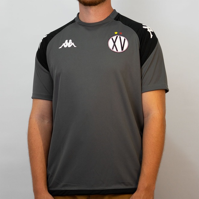 Com cor predominante em cinza, transmite elegância e versatilidade, tornando-se uma peça ideal para diferentes ocasiões. O escudo do XV e a marca da Kappa são aplicados em silk, reforçando a identidade do clube e celebrando a nova parceria com a patrocinadora.
