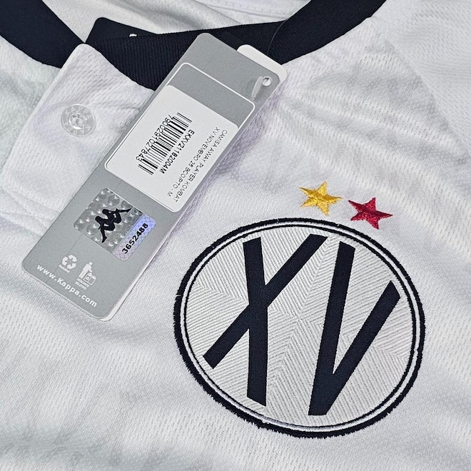 O modelo conta com mangas curtas e gola redonda com botão, oferecendo praticidade e estilo diferenciado. O escudo do XV de Piracicaba vem bordado no peito, reforçando a tradição e identidade do clube, acompanhado do patrocínio da Kappa estampado. Confeccionada em poliéster leve, a camisa garante conforto, respirabilidade e ótimo desempenho, unindo funcionalidade e sofisticação em um uniforme que representa fielmente a história do time