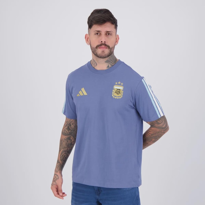 Composição: 100% Algodão Cor predominante: Azul Indicado para: Casual Origem: Importada Escudo: Bordado Gênero: Masculino Seleção: Argentina Manga: Curta Gola: Careca Modelagem: Regular Dimensões aproximadas (A x L): P (S): 69 x 50 cm M (M): 73 x 53 cm G (L): 74 x 56 cm GG (XL): 79 x 62 cm EG (2XL): 81 x 67 cm EEG (3XL): 82 x 75 cm
