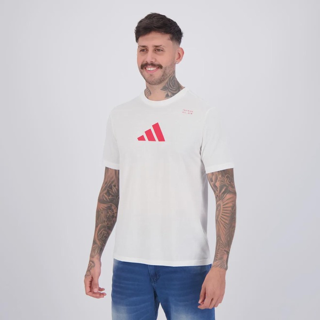 Tecnologia ClimaCool: Oferece ventilação avançada e controle de umidade para manter o corpo seco e fresco durante atividades físicas. Composição: 65% Poliéster e 35% Algodão Cor predominante: Branco Indicado para: Treino Gênero: Masculino Origem: Importada Logo: Estampada Manga: Curta Gola: Careca Dimensões aproximadas (A x L): PP: 70 x 52 cm P: 72 x 54 cm M: 74 x 56 cm G: 76 x 58 cm GG: 78 x 60 cm EG: 80 x 62 cm