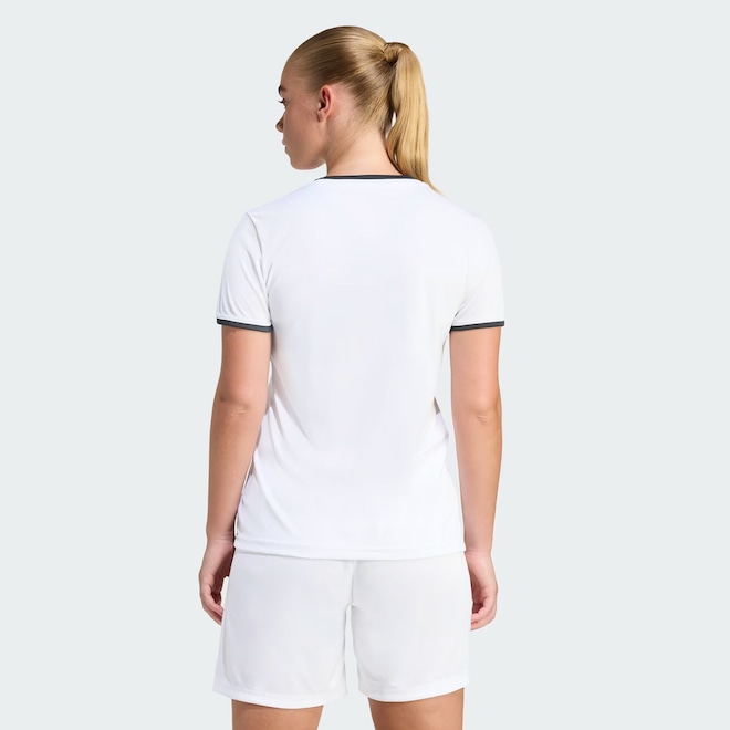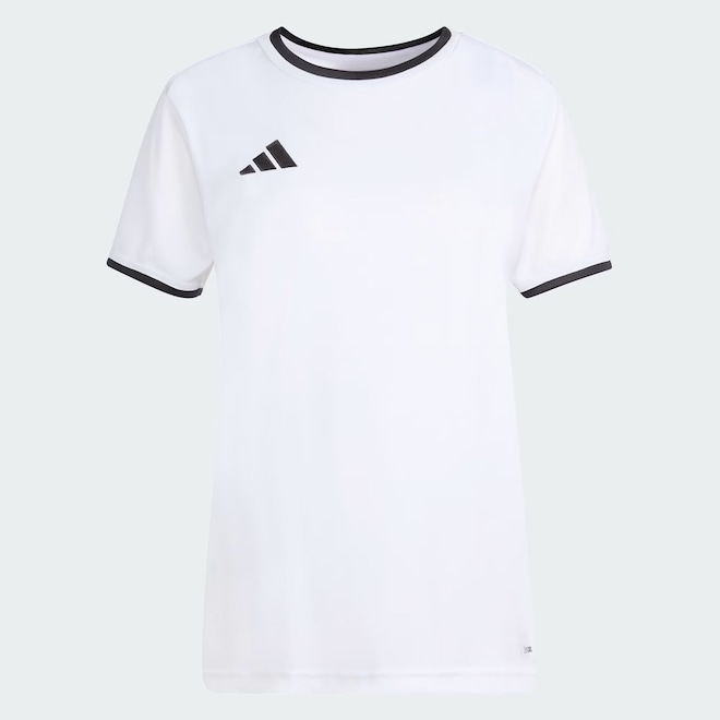 Tecnologia Climacool: Sistema que controla o excesso de umidade do corpo, garantindo a rápida secagem do suor durante o treino. Composição: 100% Poliéster Cor predominante: Branca Indicado para: Treino Origem: Importada Logo: Bordada Manga: Curta Gola: Careca Dimensões aproximadas (A x L): EP: 63 x 41 cm P: 65 x 43 cm M: 67 x 45 cm G: 69 x 47 cm GG: 71 x 49 cm EG: 73 x 51 cm