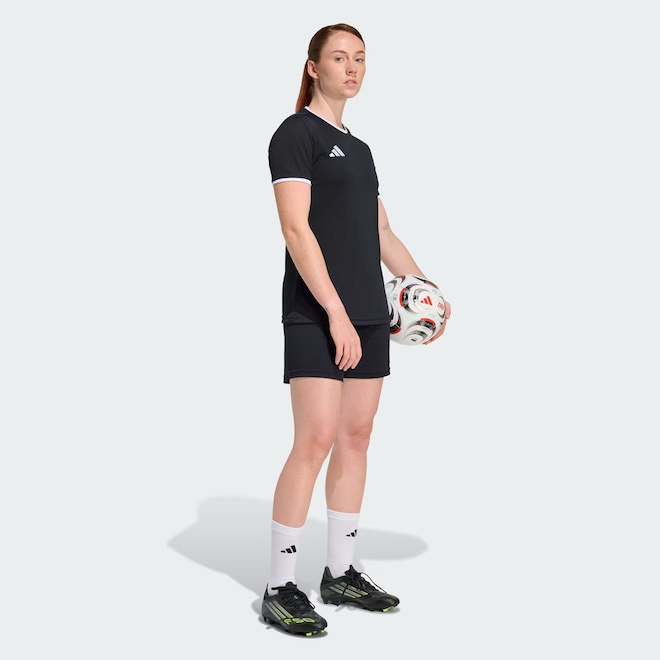 Tecnologia Climacool: Sistema que controla o excesso de umidade do corpo, garantindo a rápida secagem do suor durante o treino. Composição: 100% Poliéster Cor predominante: Preta Indicado para: Treino Origem: Importada Logo: Bordada Manga: Curta Gola: Careca Dimensões aproximadas (A x L): EP: 63 x 41 cm P: 65 x 43 cm M: 67 x 45 cm G: 69 x 47 cm GG: 71 x 49 cm EG: 73 x 51 cm