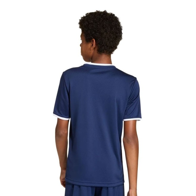 A Camiseta Adidas Entrada 26 Infantil combina estilo clássico e desempenho funcional, ideal para os pequenos atletas que vivem o futebol. Confeccionada em poliéster leve e respirável, garante conforto, liberdade de movimento e foco total durante os treinos e jogos.